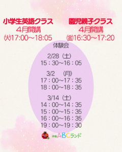 幼児・小学生からカードゲームで遊びながら英語の発音を育て 英語発音を大切に育てリスニング力が自然にアップ♪ フォニックス(日本語のあいうえおの様な読み方)や さらには中学3年生までの英文法を 5ヶ月間でフォニックス基礎を学び フォニックスで読む力をつけつつ ABCランドは年間レッスン数が多く、レッスン時間も長め! レッスン時間も長い♪ 長いレッスン時間なのにあっという間、「もう終わり!?」って声が出ます!